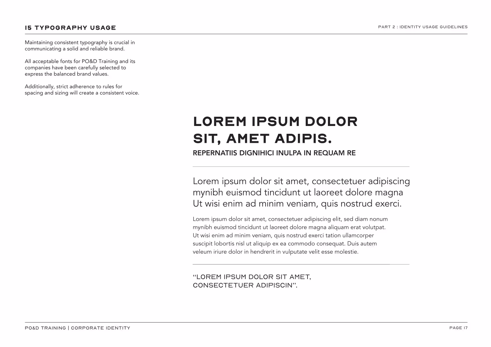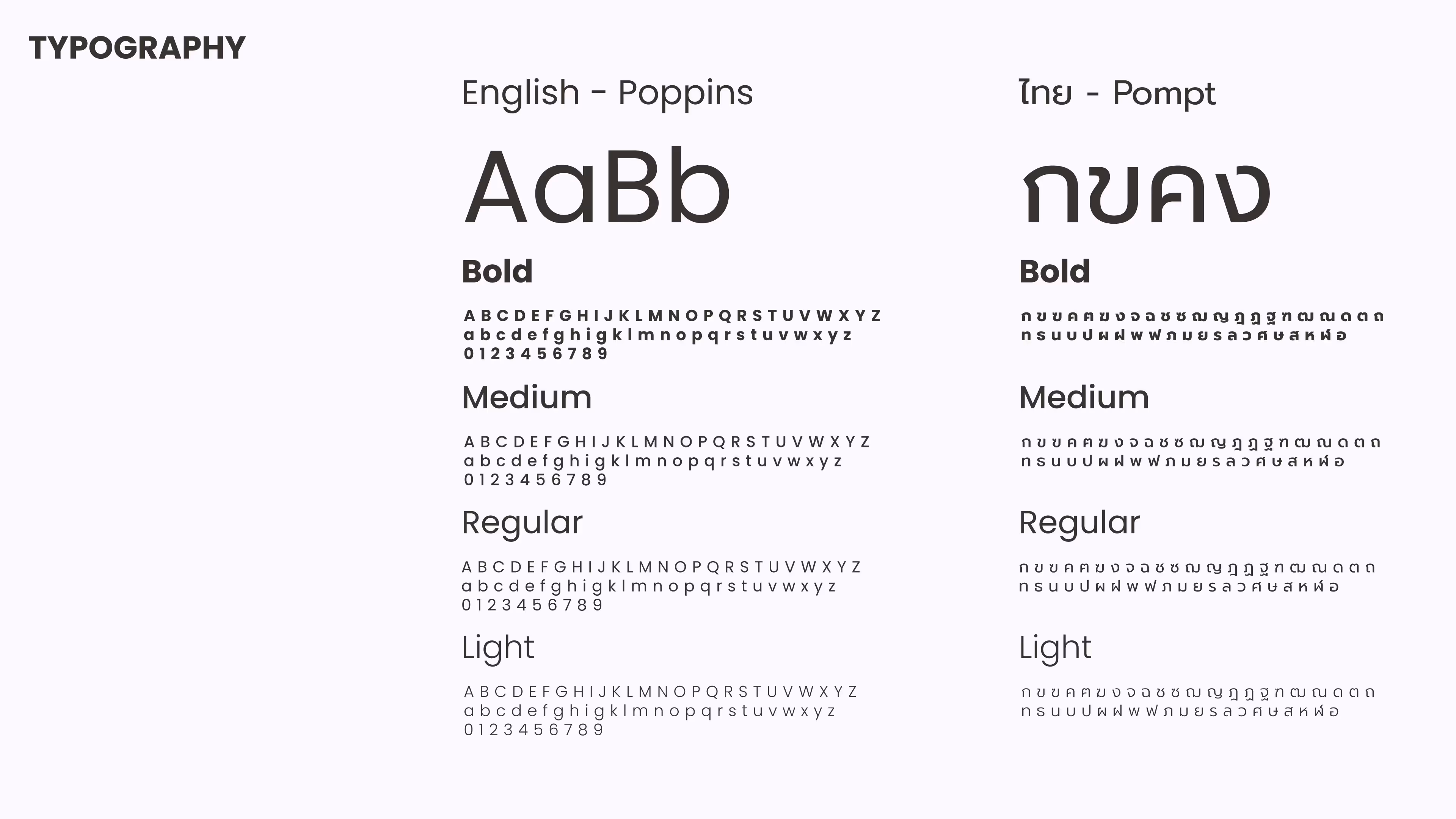 โดยจะประกอบไปด้วย รูปแบบของฟอนต์ที่แสดงออกถึงภาพลักษณ์ของแบรนด์ และการเลือกใช้ขนาดของฟอนต์ในแต่ละสื่อ แต่ละแพลตฟอร์ม