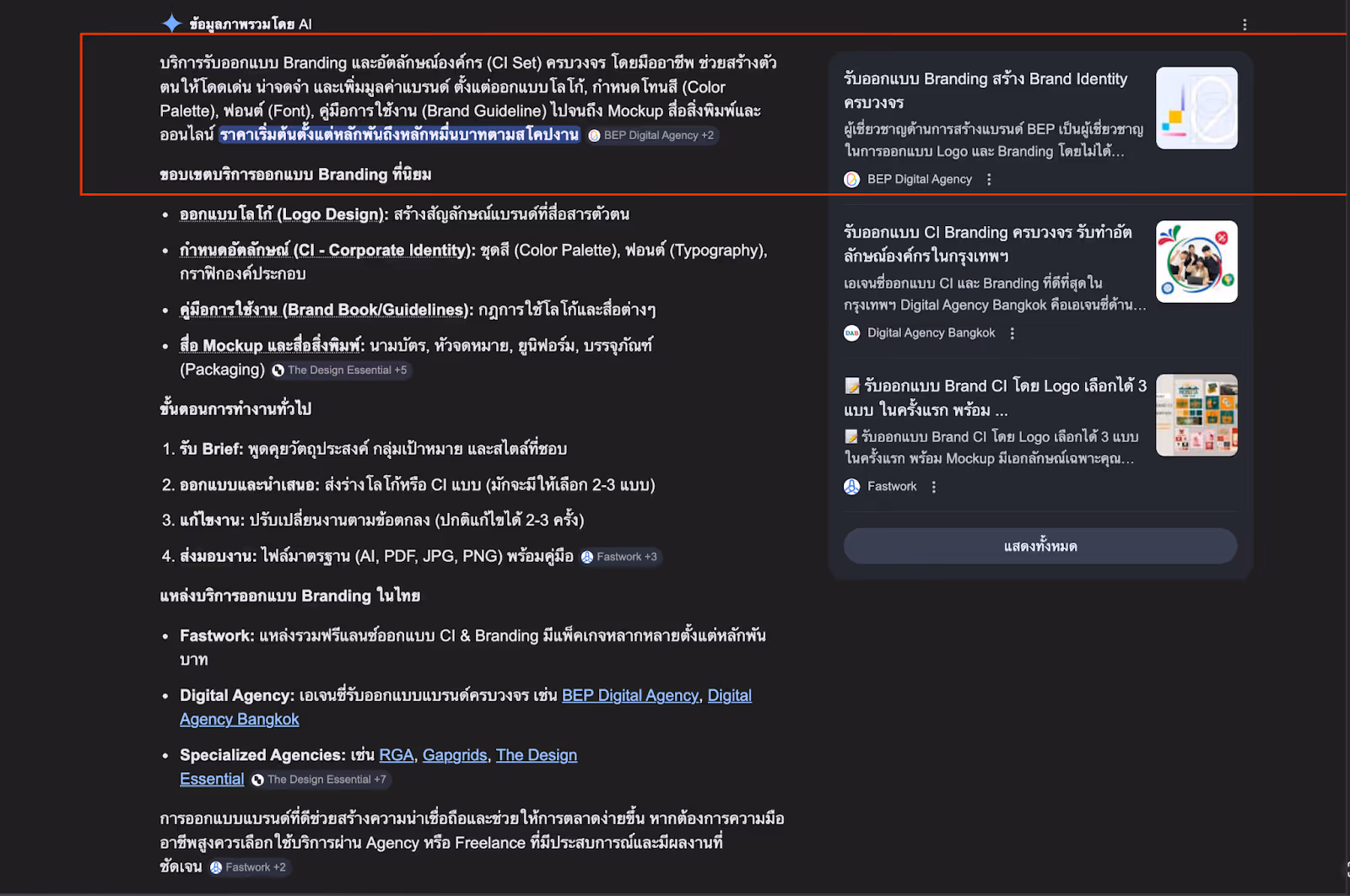 เว็บไซต์ที่ทำ SEO มาอย่างดีนอกจากจะติดใน Google search แล้วยังสามารถติดใน AI Overview ได้ด้วย